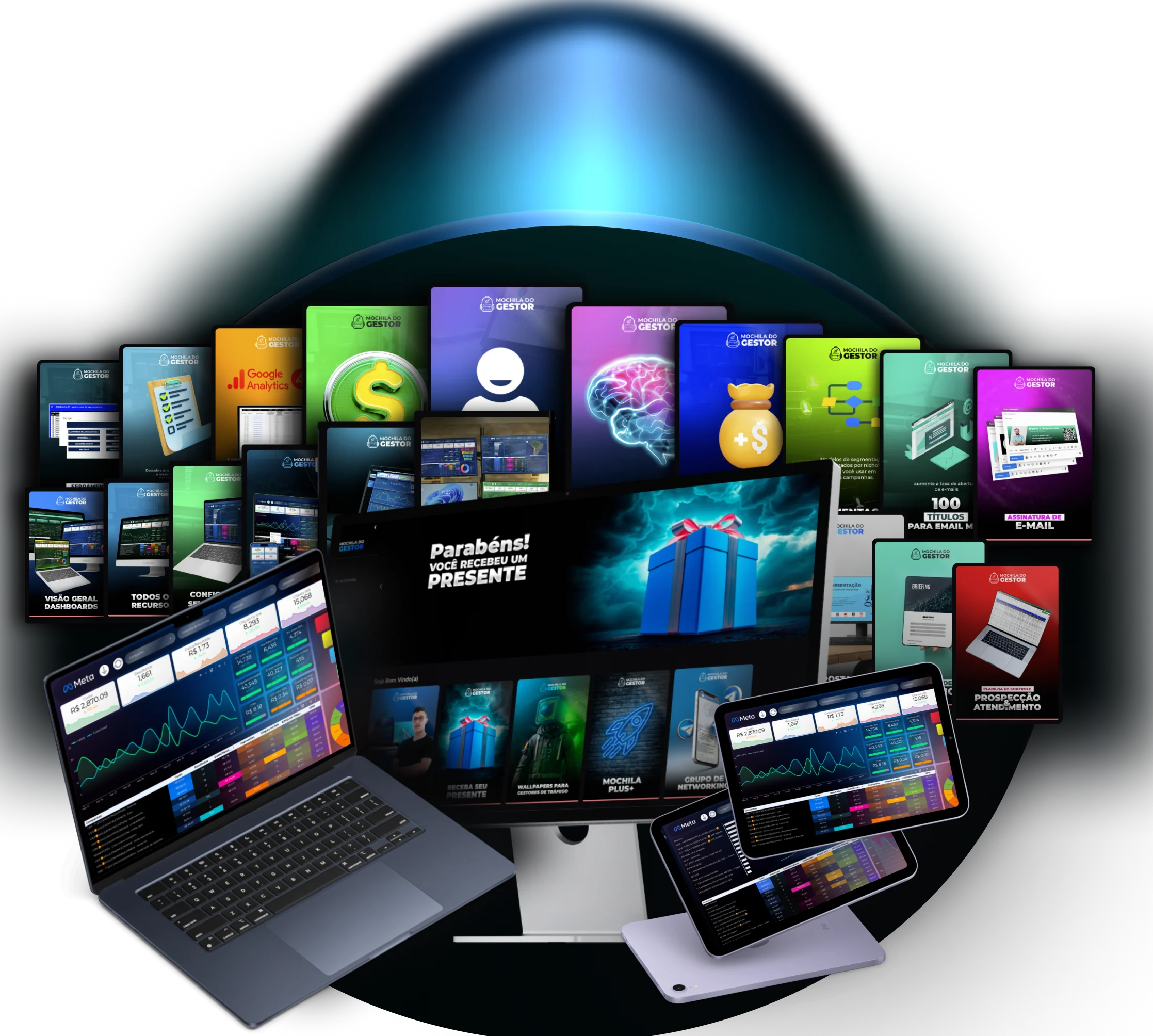O Dashboard da Mochila do Gestor é o mais profissional do mercado, reunindo dados de campanhas em tempo real. Acesse qualquer informação em qualquer data e de qualquer lugar, seja no computador ou no celular.